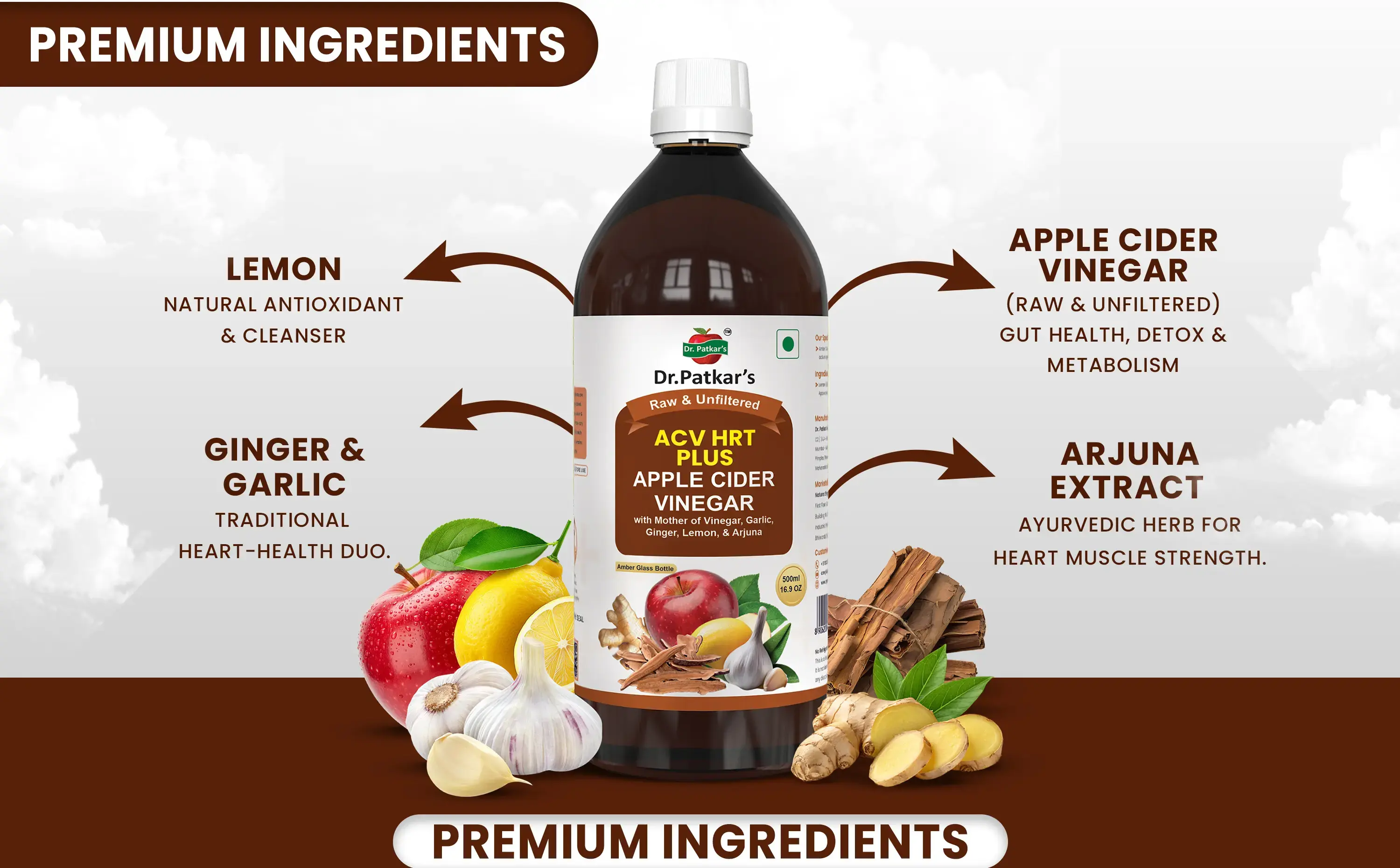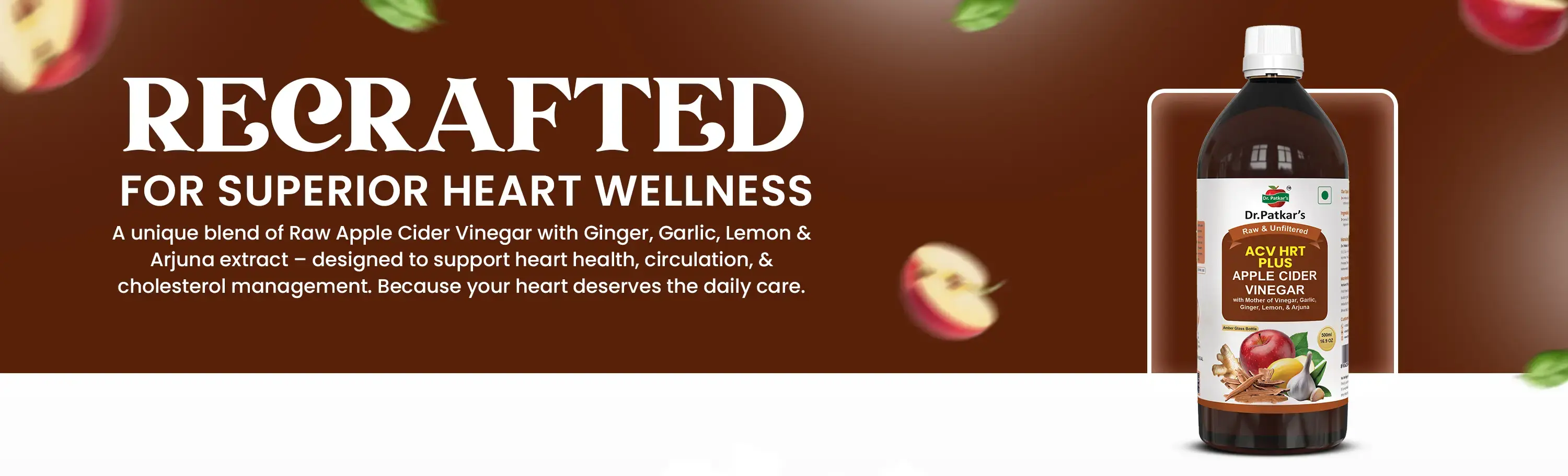 Bring home the authentic taste of Dr. Patkar’s Apple Cider Vinegar with Ginger, Garlic, Lemon & Arjuna — a premium choice for those who value quality, purity, and tradition.
